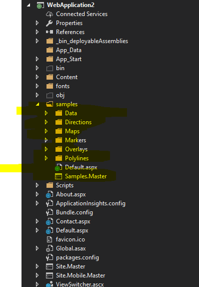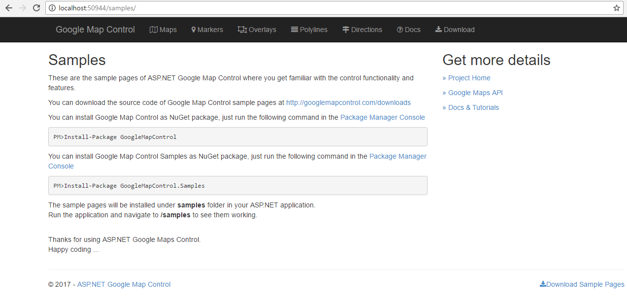 The NuGet package install will add the sample pages under samples folder inside your application.