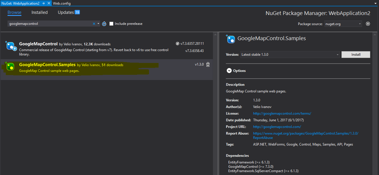 The necessary changes will be done to your Web.config, just replace the Google Maps API Key placeholder with your generated key.